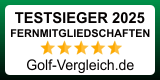 Auch im Jahr 2025 wurden wir erneut zum Testsieger des Portals www.golf-vergleich.de in der Kategorie „Golf Fernmitgliedschaften“gewählt.