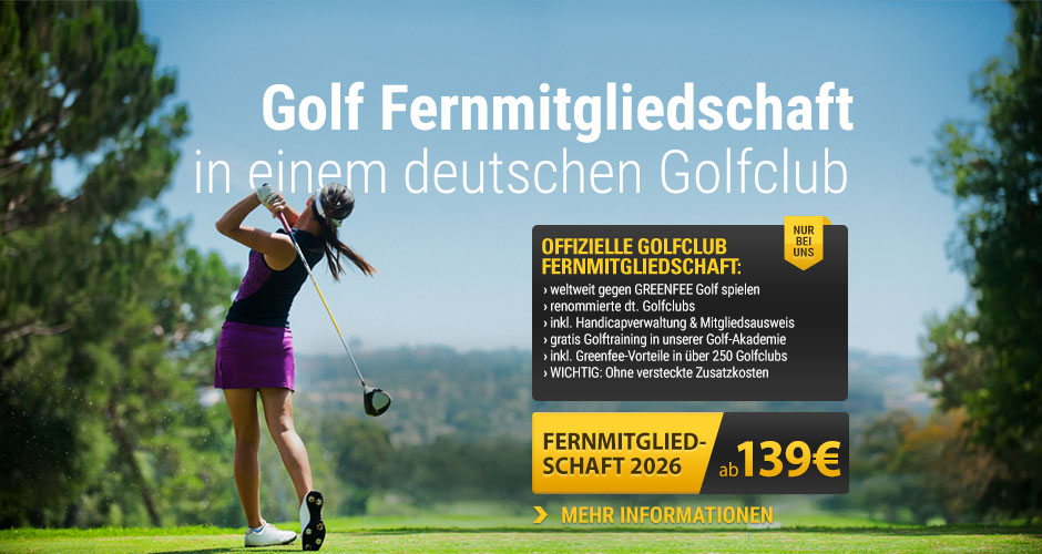Wir vermitteln Golfern und Golferinnen Fernmitgliedschaften in Golfclubs, die dem deutschen Golfverband angeschlossen sind. Eine solche anerkannte Golf Fernmitgliedschaft (in einem Golfclub "fern" des Wohnorts) berechtigt Sie weltweit zum Golfspiel gegen Greenfee auf nahezu jeder Golfanlage. Um eine günstige Golf Fernmitgliedschaft beantragen zu können, benötigen Sie lediglich eine Golf-Platzreife oder ein bestehendes Handicap.
